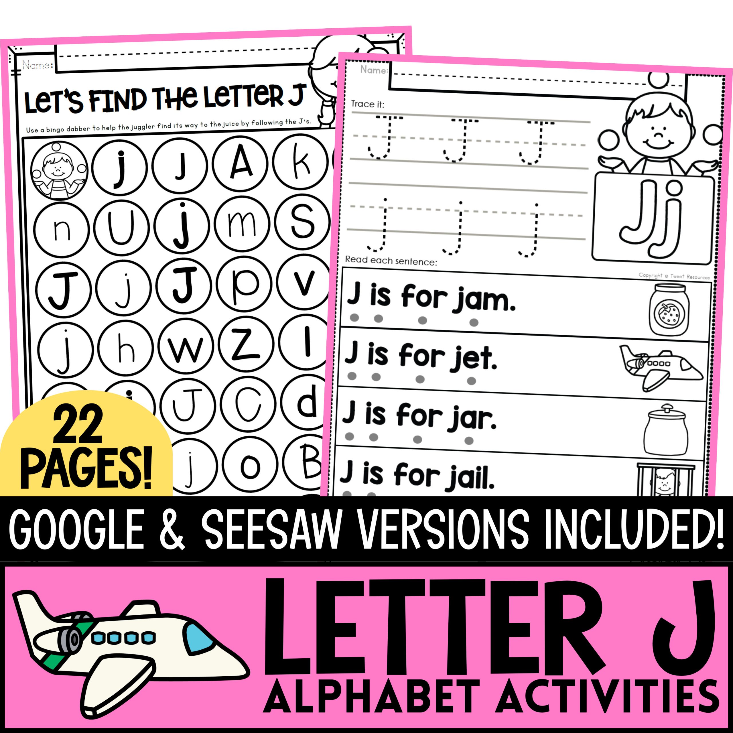 Teach your students all about the Letter J with this wonderful collection of classroom printables! Over 20 pages of NO PREP PRINTABLES for teaching the letter sound J, including printing practice pages, letter sorts, picture search pages, crowns, mazes and much, much more! These alphabet activities are perfect for your letter of the week program, literacy centers, homework and ELL instruction.